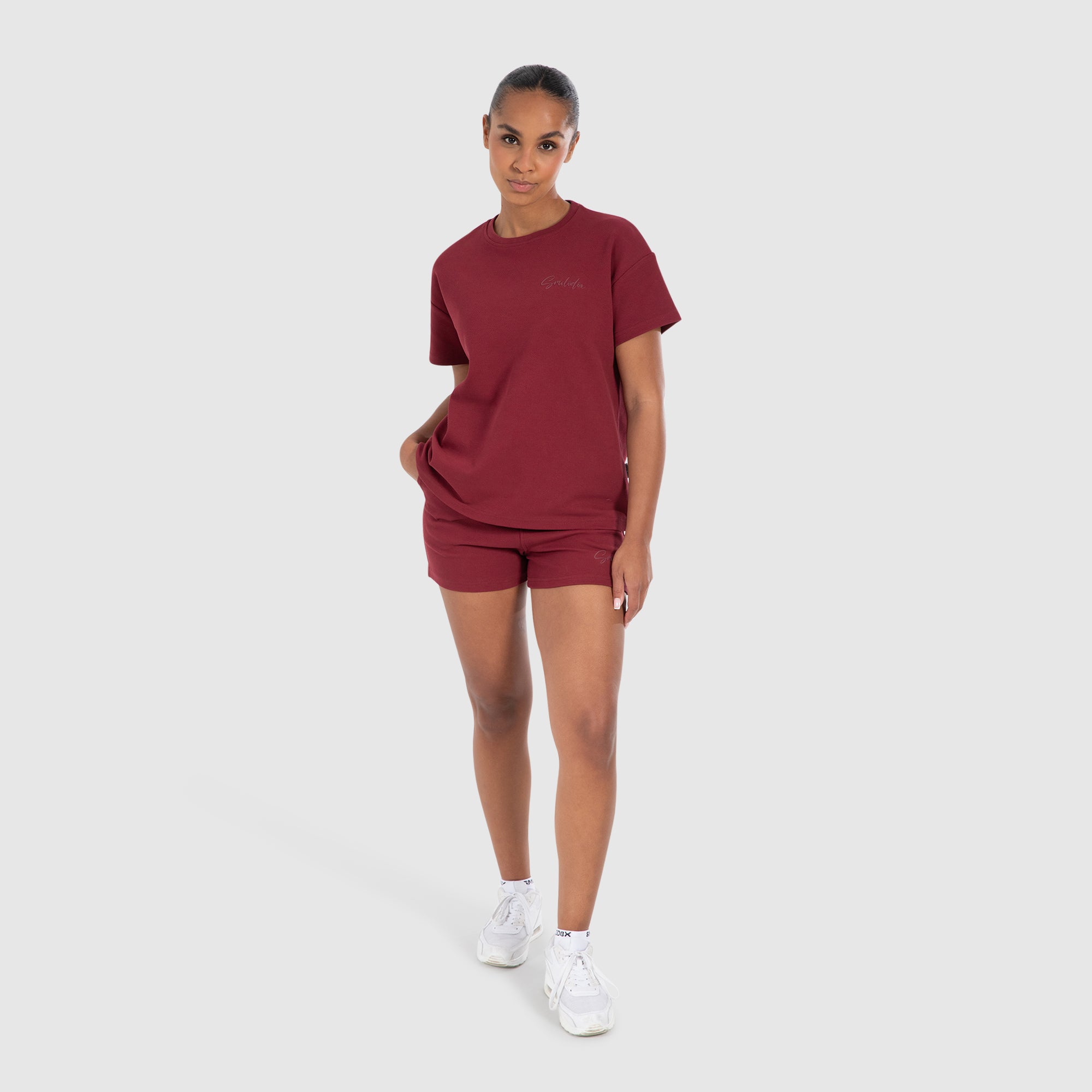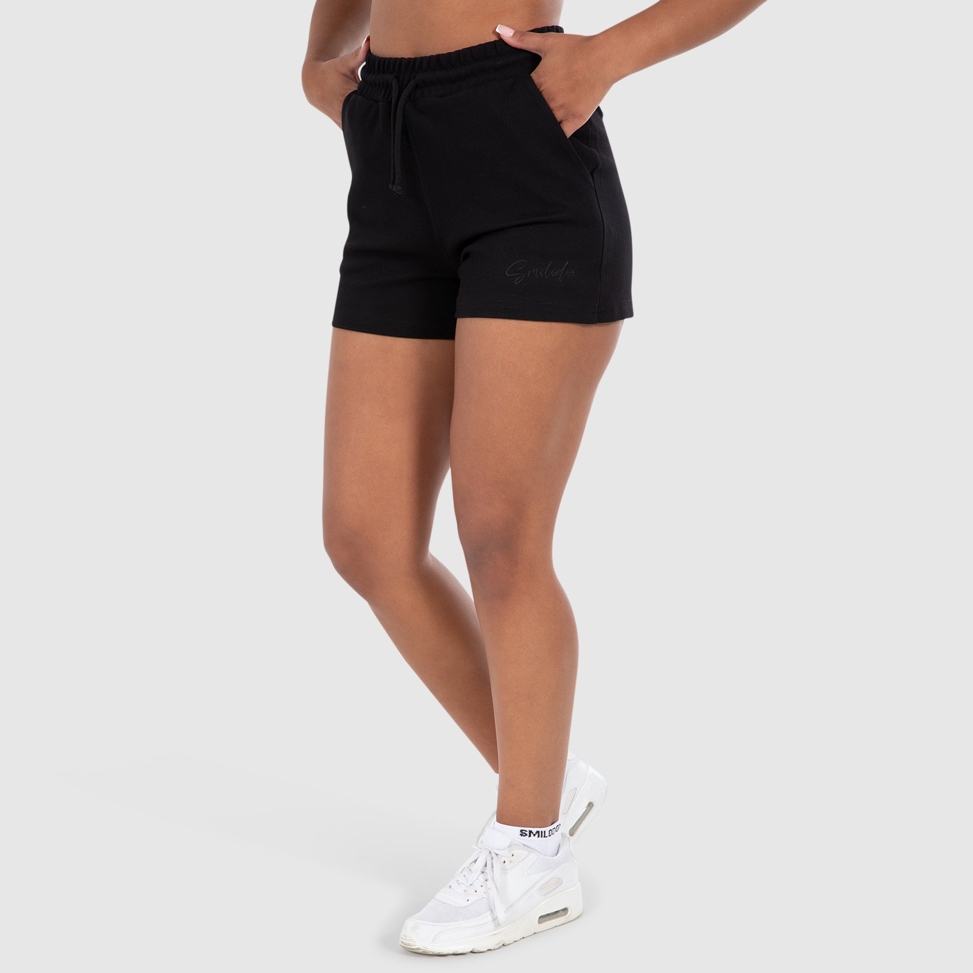 Entdecke unsere Smilodox Shorts im Regular Fit! Mit seitlichen Eingriffstaschen und aufgesetzten Paspeltaschen hinten bieten sie sowohl Funktionalität als auch Stil. Der Smilodox Schriftzug in Schreibschrift am Saum und das Smilodox Label setzen dezente Akzente. Die Kordeln vorne ermöglichen eine individuelle Passform, während die diagonale Stoffoptik für ein modernes Design sorgt. Perfekt für Sport und Freizeit!